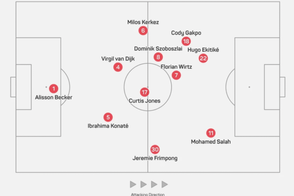 Record £116m acquisition Florian Wirtz started in attacking midfield, Jeremie Frimpong and Milos Kerkez formed a new-look full-back pairing, while Hugo Ekitike led the line as the central striker.