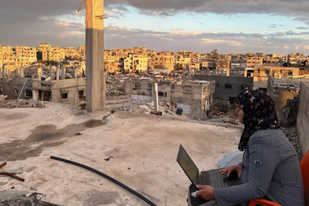 She submitted one of her grant applications from the roof of a damaged four-storey building, climbing up in order to find enough signal. When she reached the top, Manar says she saw gunfire directed at a neighbouring block, and shrapnel landing nearby.