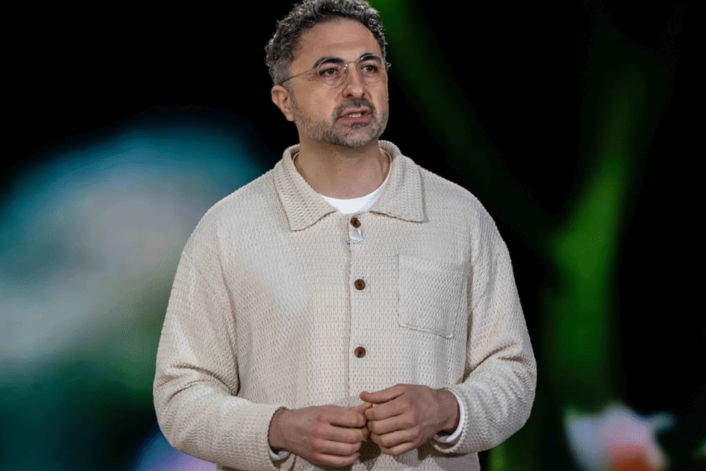 Microsoft AI CEO Suleyman speaking at a Copilot event in April.Photographer: Winni Wintermeyer/Washington Post/Getty Images